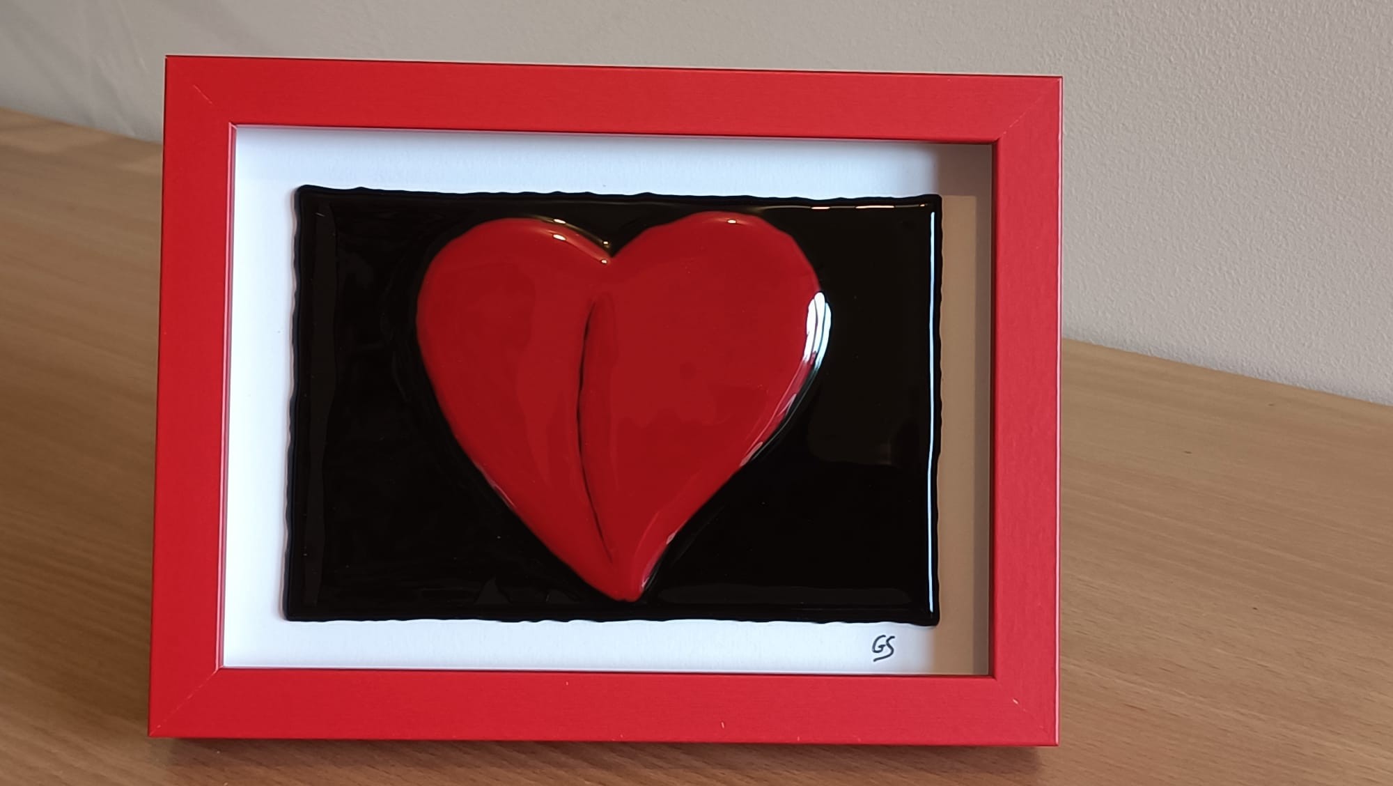 Joli cadre décoratif en verre représentant un coeur rouge sur un fond noir !