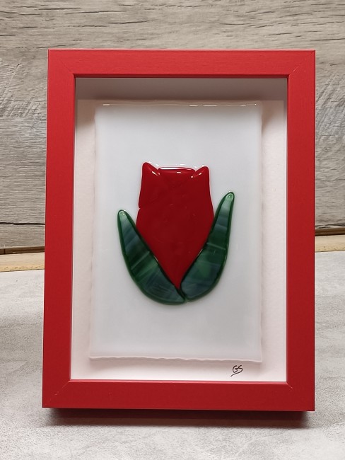 Il est réalisé entièrement en fusing qui est une technique de cuisson du verre dans un four dont la température monte jusqu'à 800°C !